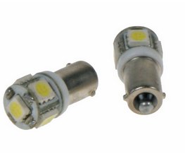 Náhradní LED žárovka s paticí BA9S, bílá, 5x vysocesvítivé 3-čipové SMD LED diody, napájecí napětí 12V, vhodná do parkovacích světel u starších vozidel. Svítivost LED diody je podstatně větší než u žárovky 12V 5W. Díky teplotě světla 8000 K jsou LED žárovky ideálním doplňkem do reflektorů s xenonovými výbojkami, kde žluté světlo obyčejné žárovky působí rušivě.
