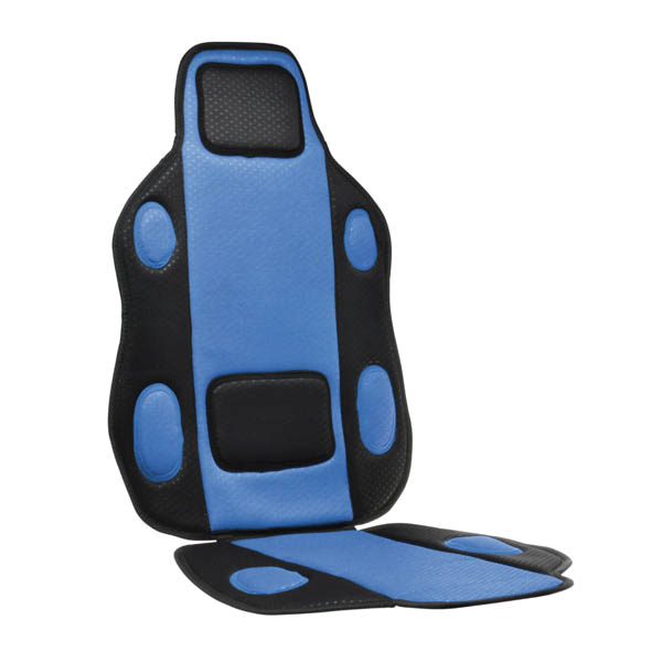 Univerzální potah sedadla s atraktivním designem. Lze připevnit na většinu běžně používaných automobilových sedadel. Připevnění k sedadlu pomocí gumových popruhů. Barevné provedení černo-modré.