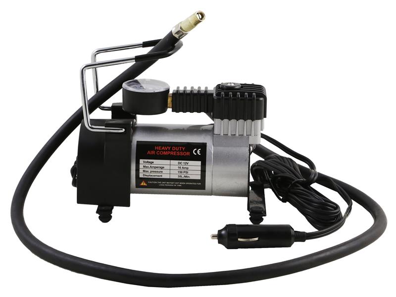 Kvalitní kompresor s maximálním výkonem 150 PSI je určený i pro náročnější použití a snadno zvládne i delší nafukování bez přehřátí. Mezi jeho hlavní přednosti patří kvalitní kovové provedení a velmi tichý chod. Bude vám praktickým pomocníkem při nafukování pneumatik aut a jízdních kol, sportovního vybavení a mnoha dalších předmětů. Součástí kompresoru je vestavěný tlakoměr a sada 3 praktických koncovek pro nafukování. Kompresor je napájen z 12V zásuvky zapalovače v autě.