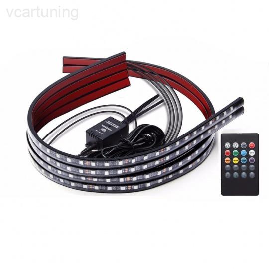 LED neony pod auto - multicolor, flexibilní   2 pásy délky 120cm a 2 pásy délky 90cm. Bezdrátové dálkové ovládání s několika funkcemi a programy. Montážní příslušenství. celý popis